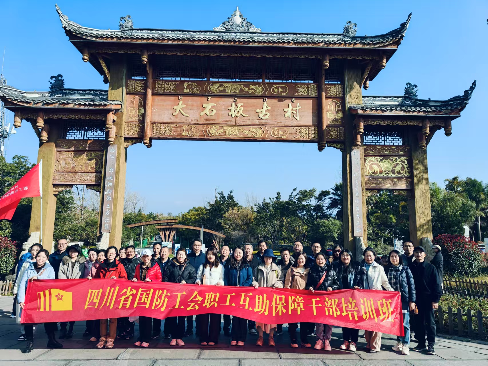 四川省国防工会职工互助保障干部培训班大石板古村合影
