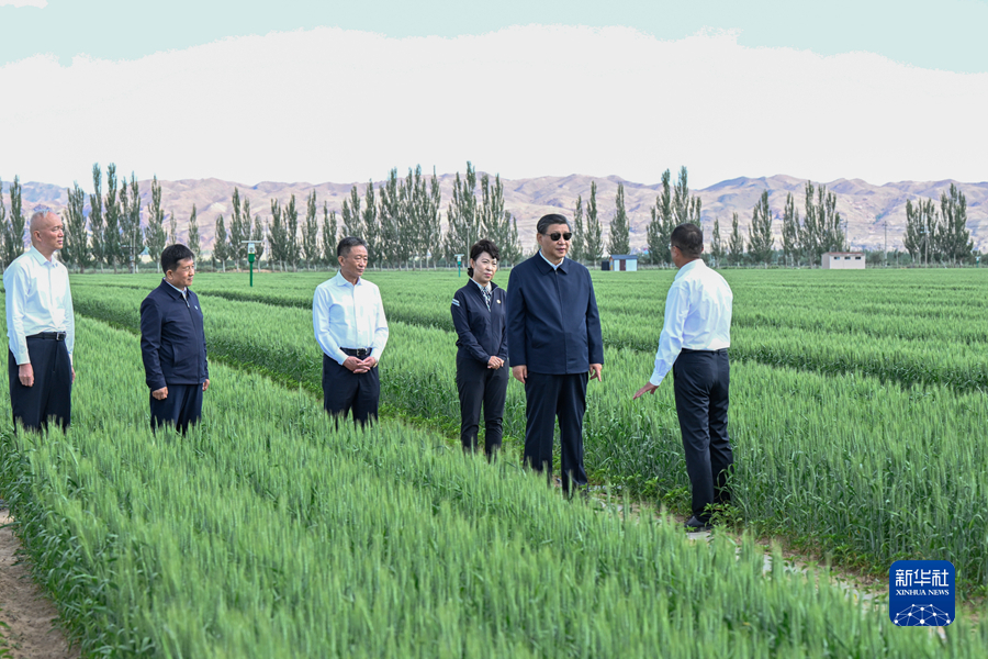 6月5日至6日,中共中央总书记、国家主席、中央军委主席习近平在内蒙古巴彦淖尔考察,并主持召开加强荒漠化综合防治和推进“三北”等重点生态工程建设座谈会。这是5日下午,习近平在位于乌梁素海南岸的现代农业示范园区考察。新华社记者 谢环驰 摄
